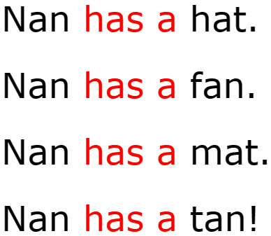 The consonant n was introduced in the previous story entitled, Nab. Unlike the letters j and h, the letter n can be at the beginning and at the end of a word. It is important to point this out to young students so they begin to understand what happens when we manipulate the letters and their corresponding sounds.