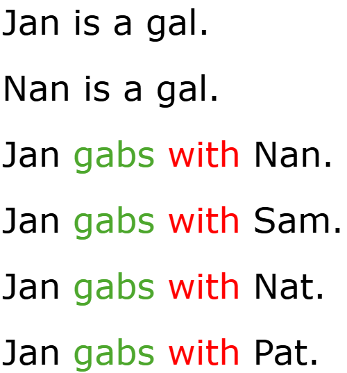 The next word in Orton’s scope and sequence is the phonogram g as in the word “gate.” Although the g has two sounds – /g/ and /j/, only the most common hard /g/ is taught this early in the scope and sequence. Note that the “w” and the “th” found in the word “with” have not been taught yet in the scope and sequence, so it is currently a “red word.” If the student has not learned those phonograms in school, it is expected that the teacher will assist the student with that word. Again, the final -s has been added to the word “gab,” so it is fair to help some students with that word as well.