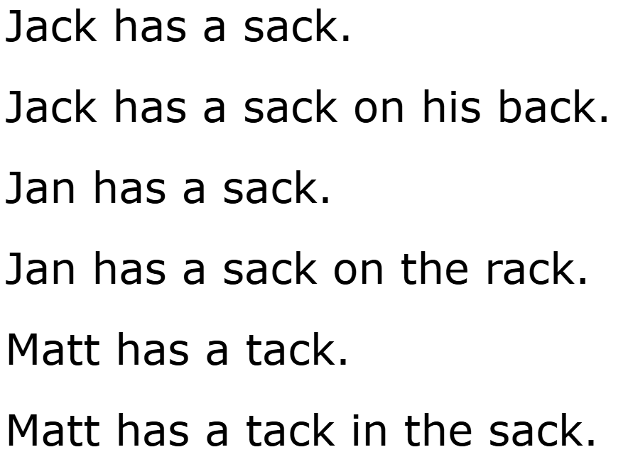 Some experts might not introduce the -ck phonogram for the /k/ sound until later in their scope and sequence. However, I have found that when paired with only the short a, students pick it up quickly.